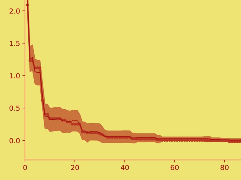Third, Papers 2 and 3 and Demos 2.1-2.3 show how good results can be reliably extracted from evolution. Given the population-based search approach, and the fact that evaluations of candidates are unreliable, evolution is faced with a multiple-hypothesis problem: The candidate that evaluates the best most likely does so because it got lucky during evaluation. When it is deployed in the future, it will therefore perform worse than expected—another candidate would have performed better, but it was overlooked because it was not as lucky. The papers and the demos show how neighboring candidates can be used to obtain a more reliable estimate, and how the estimate can be improved by best-arm selection in the multiarm bandit framework. Interestingly, this technique can also be used to improve performance in a campaign context, i.e. where evolution needs to be done during a fixed-length campaign, and the performance of all evaluations during that time needs to be maximized.